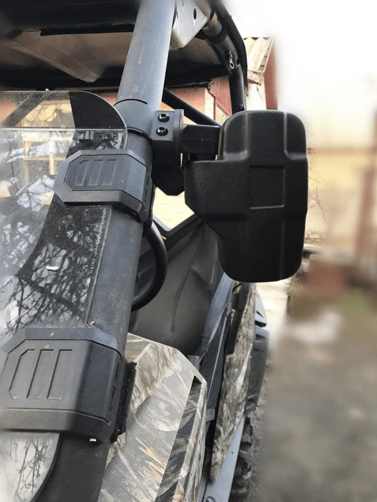 These utv mirrors dimenions are 4″ wide and 7″ tall, with a sleek and stylish design that looks great on all UTV’s and big enough for maximum view, even over harsh terrain and whoops.