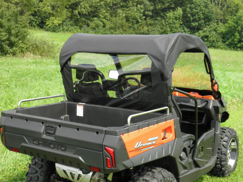 The 3 Star Industries windshield/top/rear cab enclosure is a soft cover, but rugged. With coverage overhead, front and back, the enclosure is made of heavy-duty marine canvas manufactured for the great outdoors.