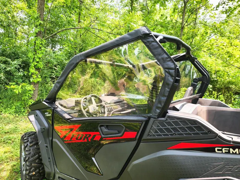Upper doors for the CFMoto ZForce 800 Trail/950 Trail & Sport are part of our modular cab system. Modular design allows you have options. When the cold winds blow, add the doors to completely enclosure your cab. When the temperature rises, either roll the doors back and secure open or remove them until needed again. While the doors work beautifully with our windshields, back windshields, and tops, they work with any manufacturer’s enclosure accessories.