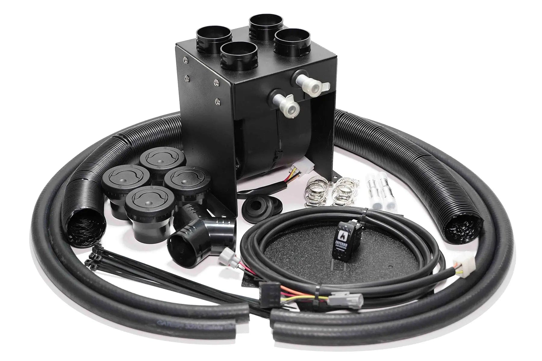 - Includes all necessary components: heater hose, hose splicers, hose clamps, mounting brackets, defrost and floor louvers, ductwork & wiring.