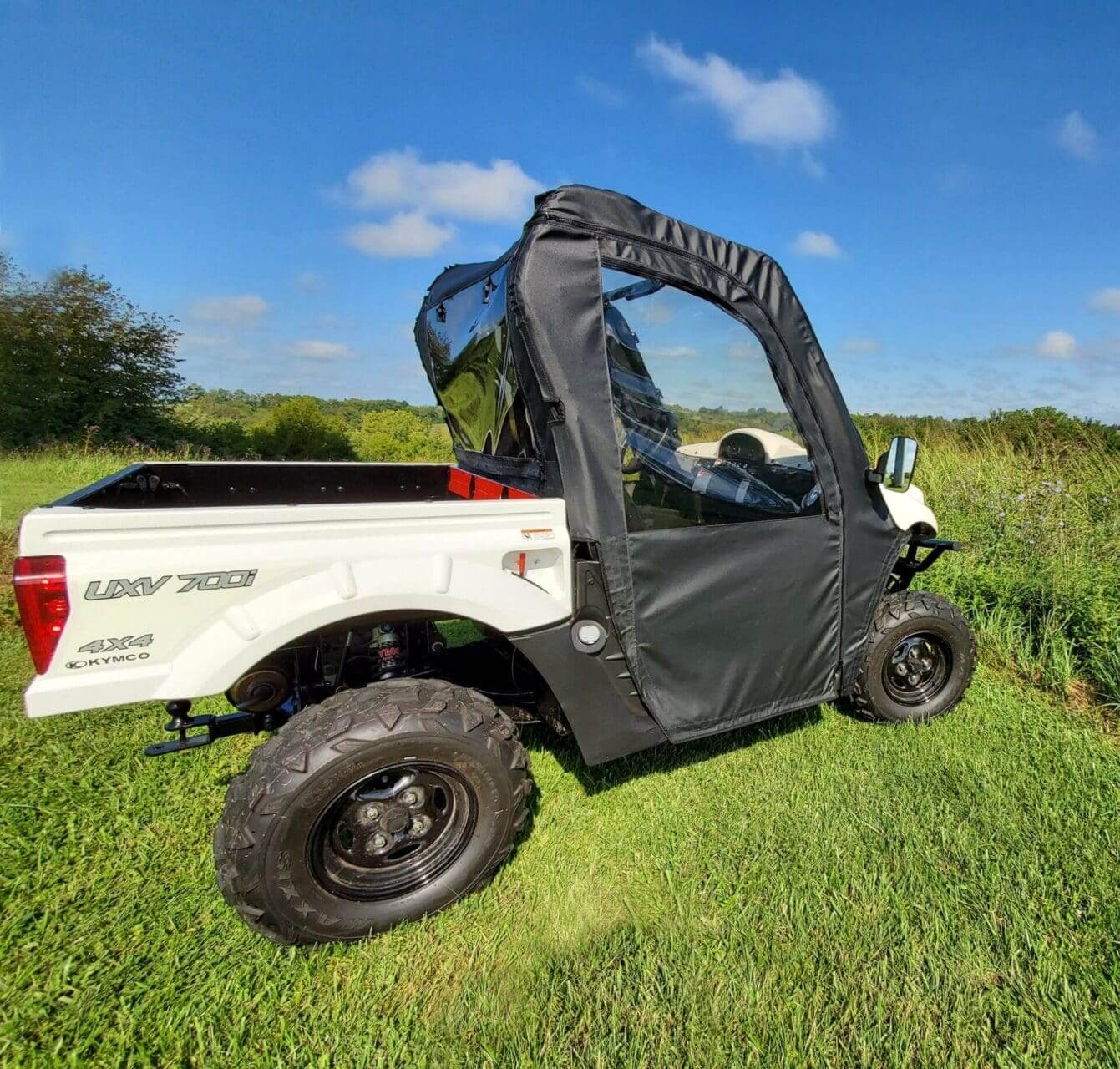 The modular door/rear window combo consists of doors and a back panel that can be installed with any hard windshield and hard top. Our enclosure is made of 100% marine grade, acrylic coated polyester fabric specifically created for rugged environments. This tough water repellent fabric is extra durable with high tensile strength, heat resistance, and long-lasting color.