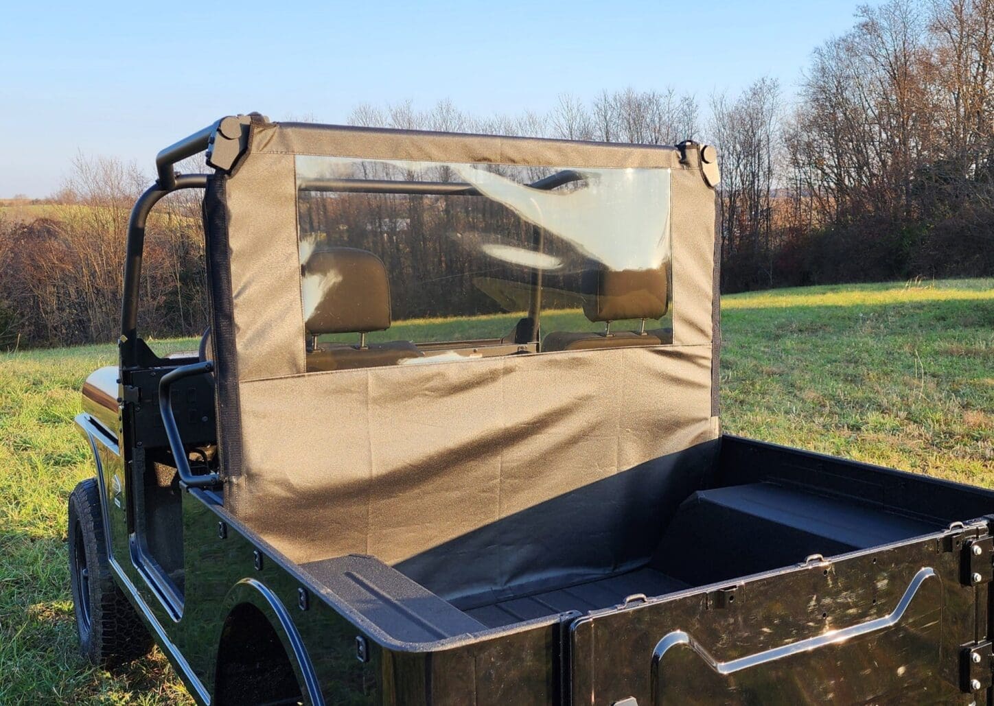 Got a hard top and windshield, but you need to stop the blow back from the bed into the cab. The Mahindra Roxor modular soft back panel will do the trick. Proudly made in the USA, the 3 Star Industries’ soft back panel is a great value.