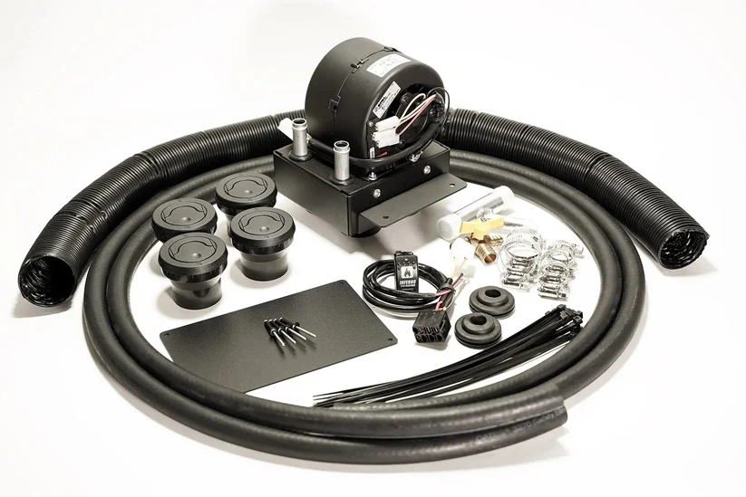 • Includes all necessary components: heater hose, hose splicers, hose clamps, mounting brackets, defrost and floor louvers, ductwork & wiring.